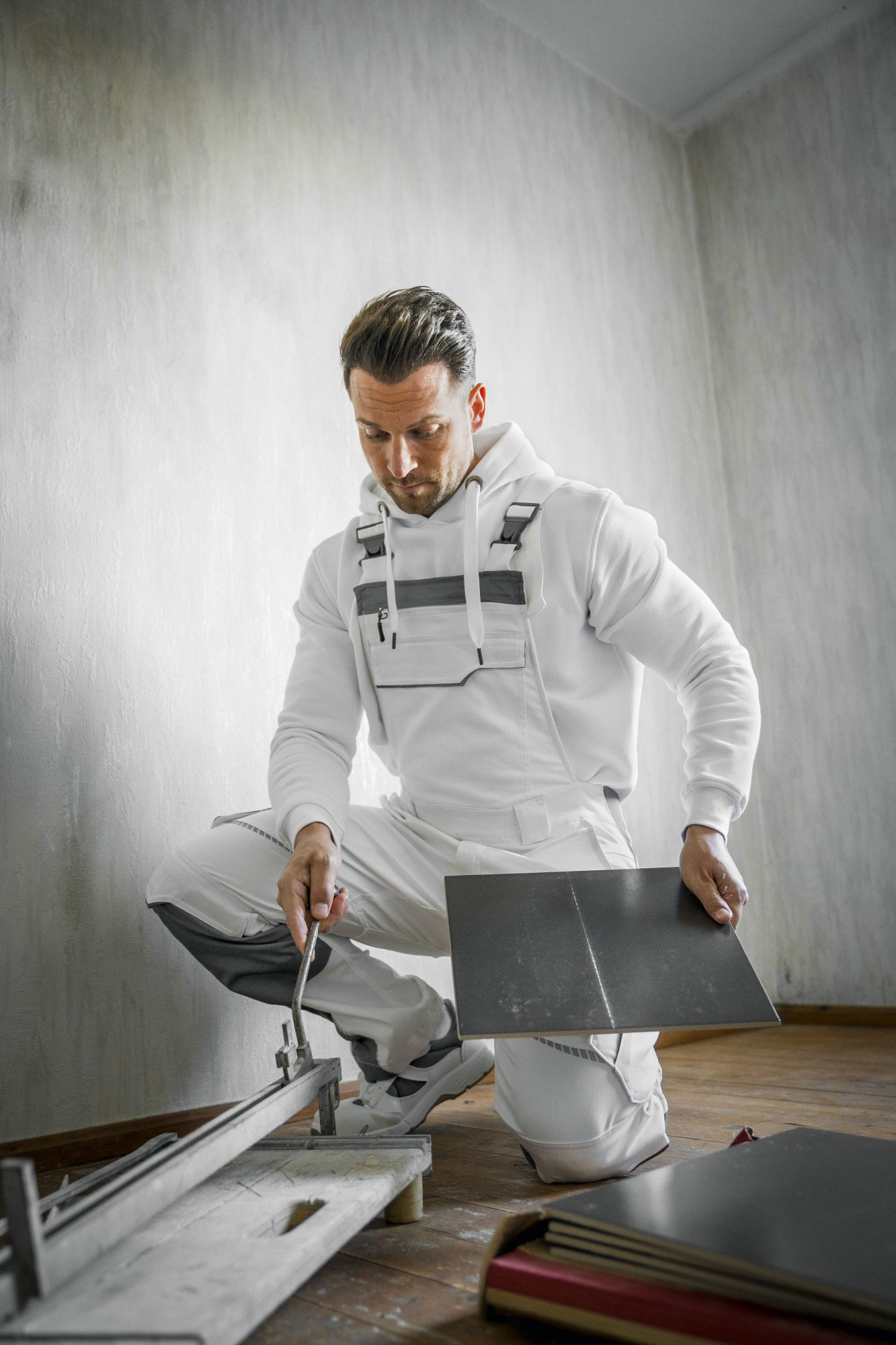 - Material: 55% Baumwolle, 42% PES, 3% Elastan (Spandex), 290 gr/m²