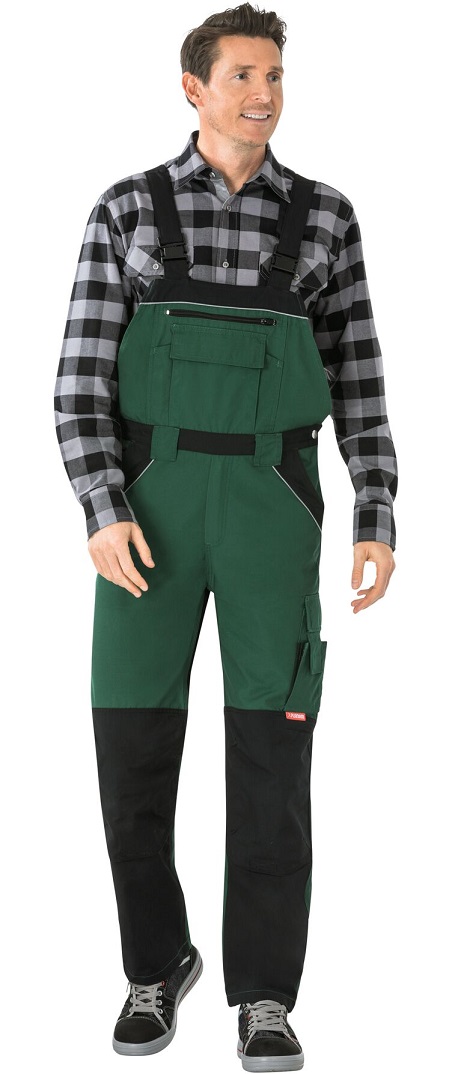 Dieser Artikel ist in Verbindung mit einem PLANAM Kniepolster (Art.-Nummer 9901027) als Knieschutz nach EN 14404 Typ 2, Stufe 1 zertifiziert. 2 eingesetzte Beuteltaschen, 2 aufgesetzte Knietaschen, doppelte Maßstabtasche rechts, links Oberschenkeltasche mit Patte und Klettverschluss, Handytasche links, Latztasche mit Patte und Klettverschluss, weitere Latztasche mit Reißverschluss, 2 Stiftfächer, Gummizug im Bund, 2 Gesäßtaschen mit Patten und Klettverschluss, Bundweitenverstellung mit Jeansknopf, Reißverschluss im Hosenschlitz, hochgezogenes Rückenteil mit Trägerkreuz, Träger mit elastischem Gummibandeinsatz, Sicherheitssteckschnalle an den Trägern, Reflexbiesen als Sicherheitsausstattung.
