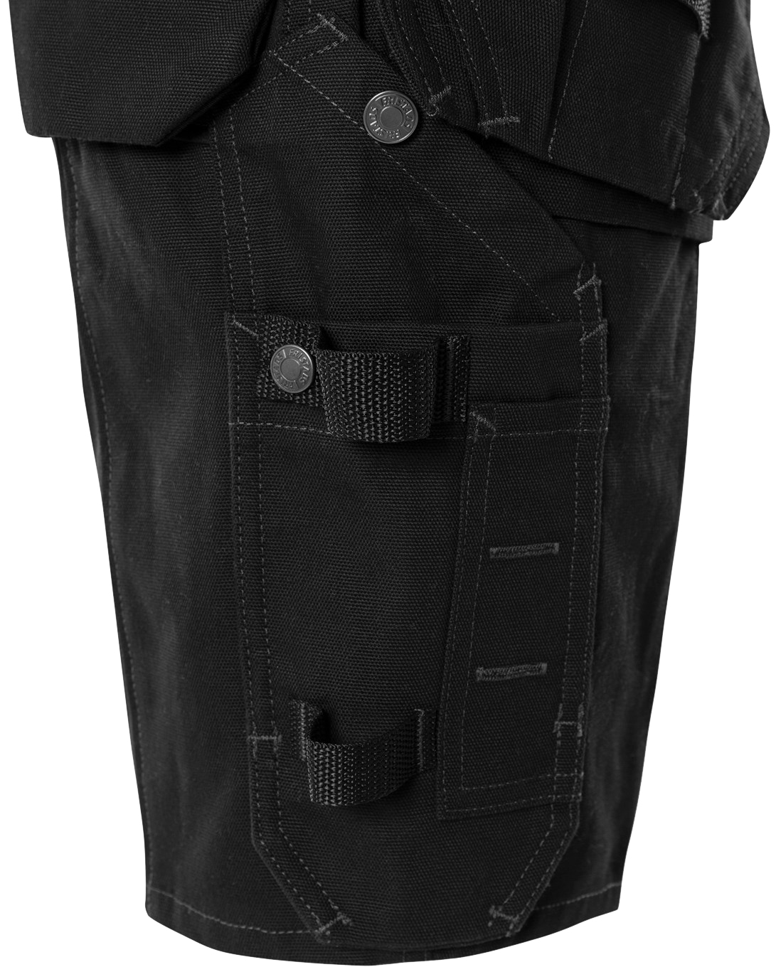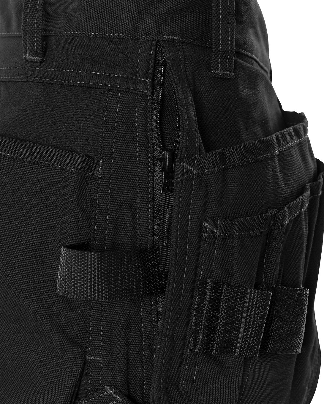• 2 CORDURA®-reinforced, loose-hanging pockets, one with 2 pockets, one with zipper, one with 3 smaller pockets and tool loops
