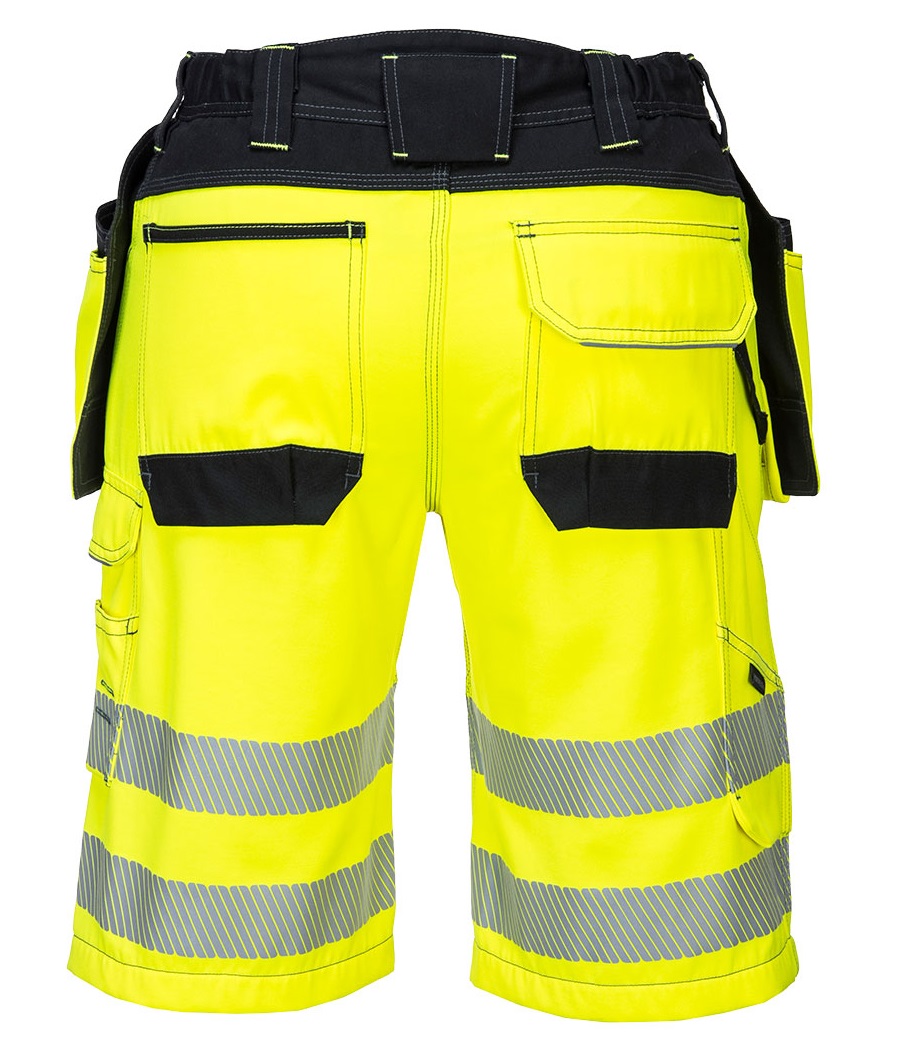 Die PW3 Hi-Vis Shorts ist stylisch und bietet eine moderne Passform für hervorragenden Arbeitskomfort. Zahlreiche Taschen, darunter abnehmbare Holstertaschen, Ausweis- und Zollstocktasche sowie eine leicht zugängliche Oberschenkeltasche bieten ausgezeichnete persönliche Sicherheit. Zu den Premium-Funktionen zählen HiVisTex Pro-Reflexionsband, elastischer Schritt, Hammerschlaufe und verstärkte Einsätze in stark beanspruchten Bereichen für maximale Haltbarkeit.