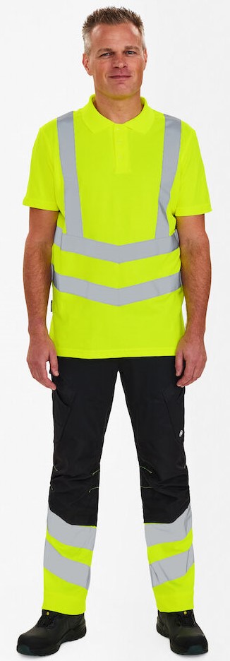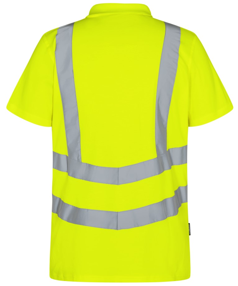 Attractive, fluorescent polo shirt in a modern design. The polo shirt is made from comfortable piqué fabric with cotton on the inside for added comfort. The polo shirt has a button fastening and a rib-knit collar. Reinforced seams. Stretchy reflective stripes for greater freedom of movement. Clothing class 2, tested after 25 washes.