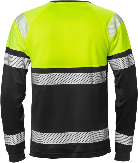 Warnschutz-T-Shirt mit langen Ärmeln und reflektierendem Stretchbesatz für mehr Bewegungsfreiheit. Hergestellt aus einem weichen und bequemen Material mit Baumwolle auf der Innenseite. Transportiert Feuchtigkeit, trocknet schnell und ist UV-geschützt.