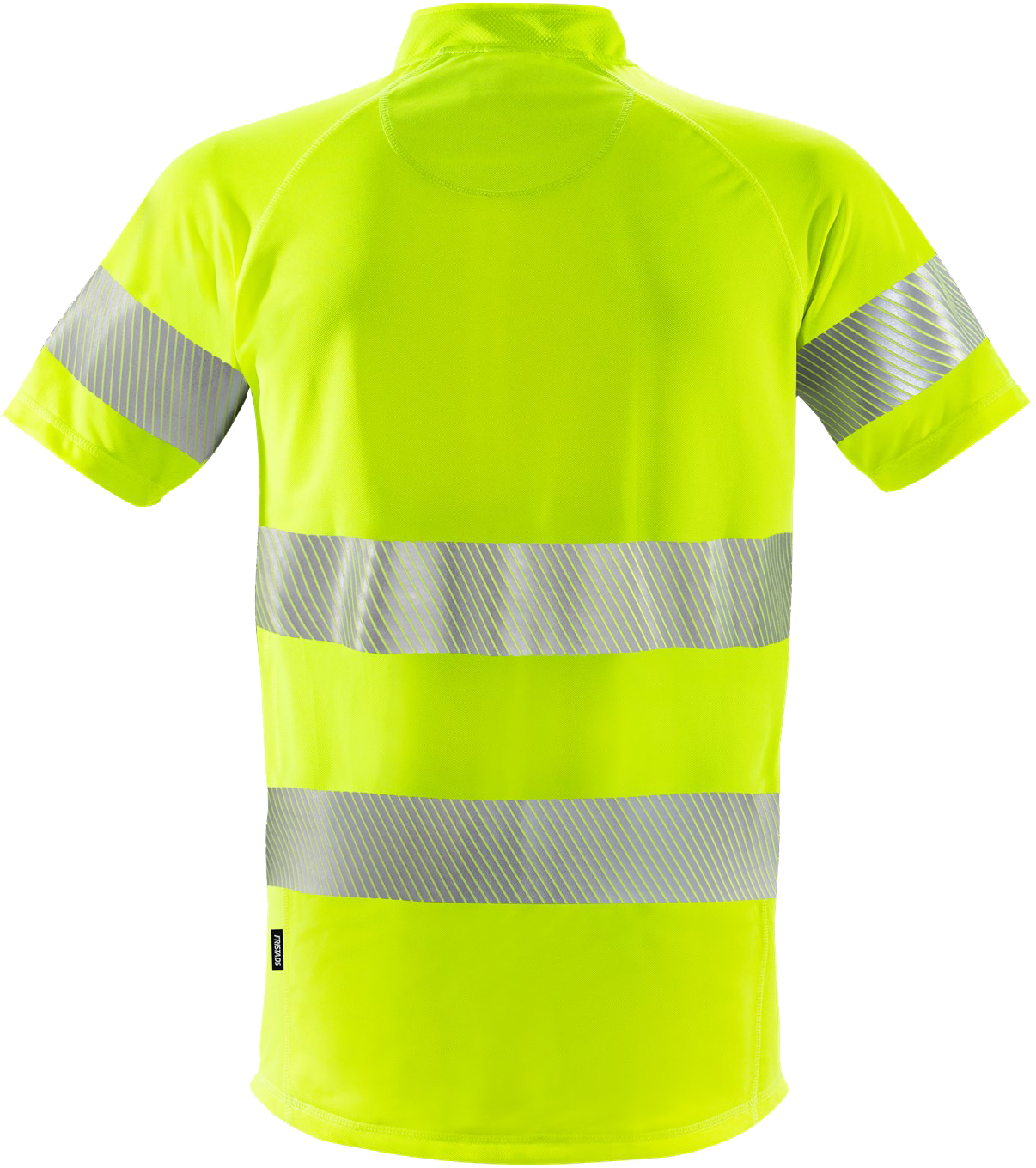 Functional high-vis T-shirt with short zipper and extended back. The 37.5® technology transports moisture, dries quickly and absorbs perspiration odors.