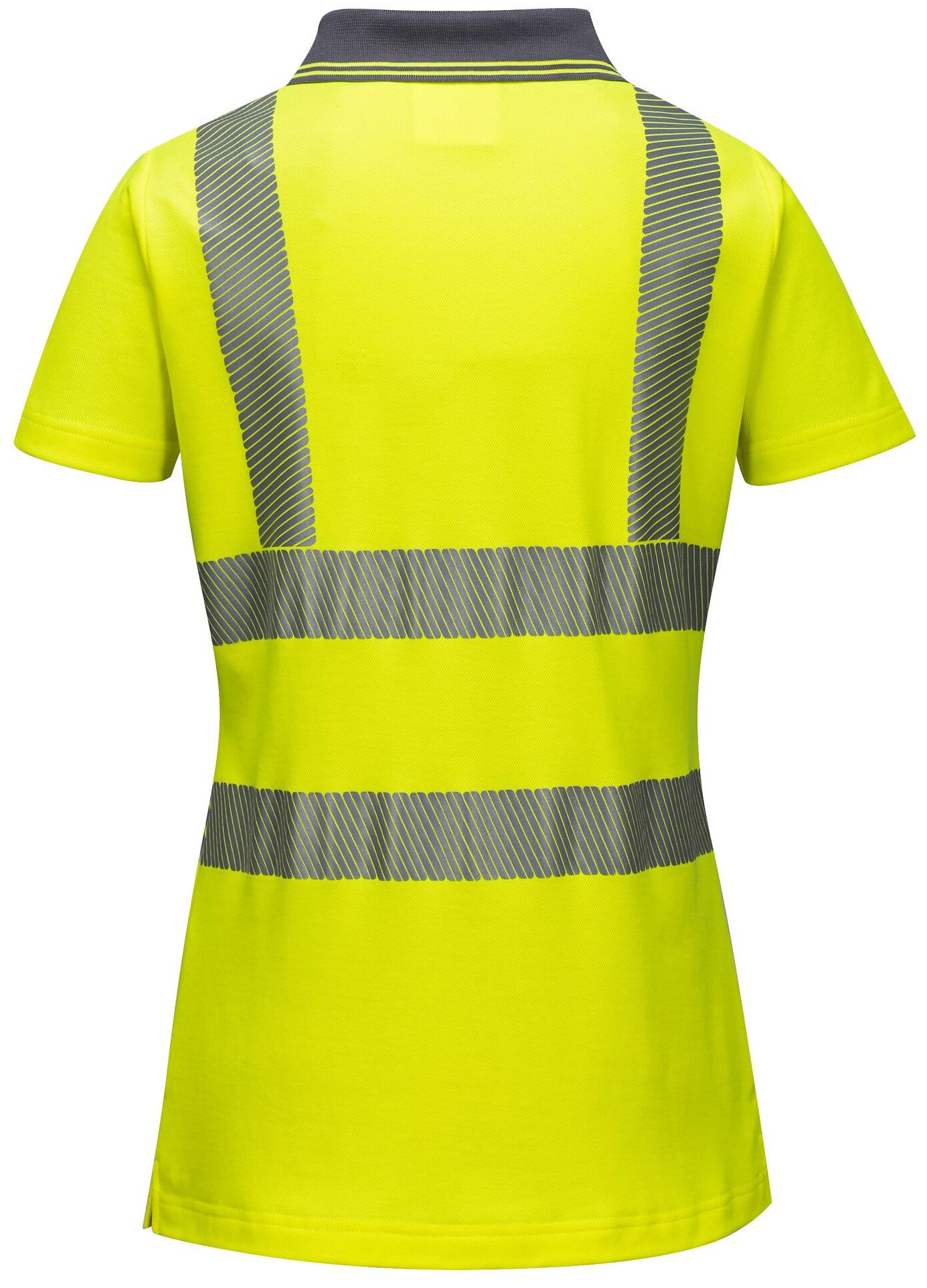 Dieses moderne Warnschutz Damen-Poloshirt kombiniert atmungsaktives Baumwoll-Comfort-Gewebe mit HiVisTex Pro Reflexband. Es bietet hervorragende Bewegungsfreiheit und hat eine feminine Passform.