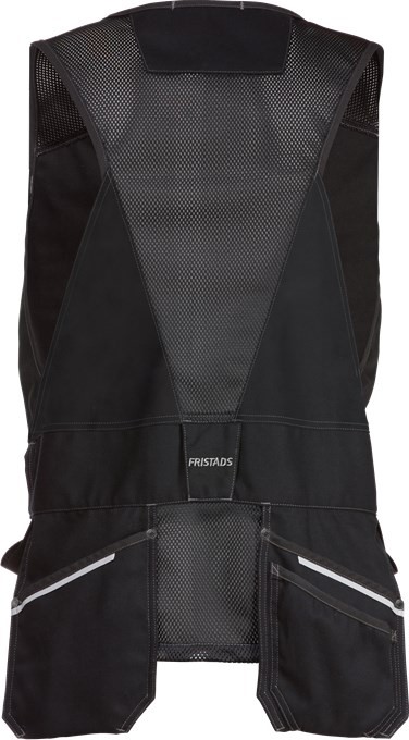 New updated version. Classic craftsman vest with ventilation mesh on the back and many functional pockets. The waistband is adjustable with a zipper so it can be worn over a lined jacket.