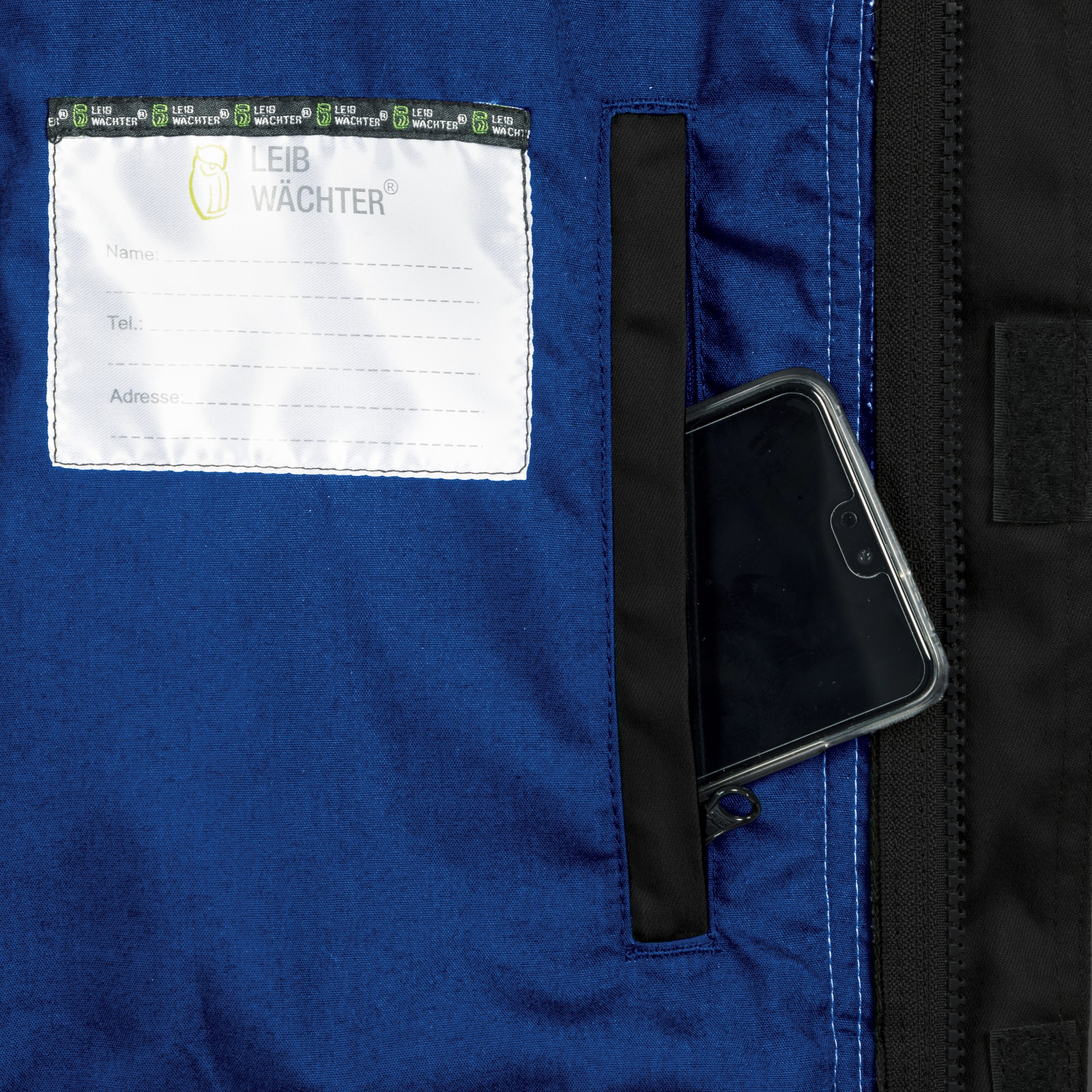 - Linke Innenbrusttasche mit Namensschild