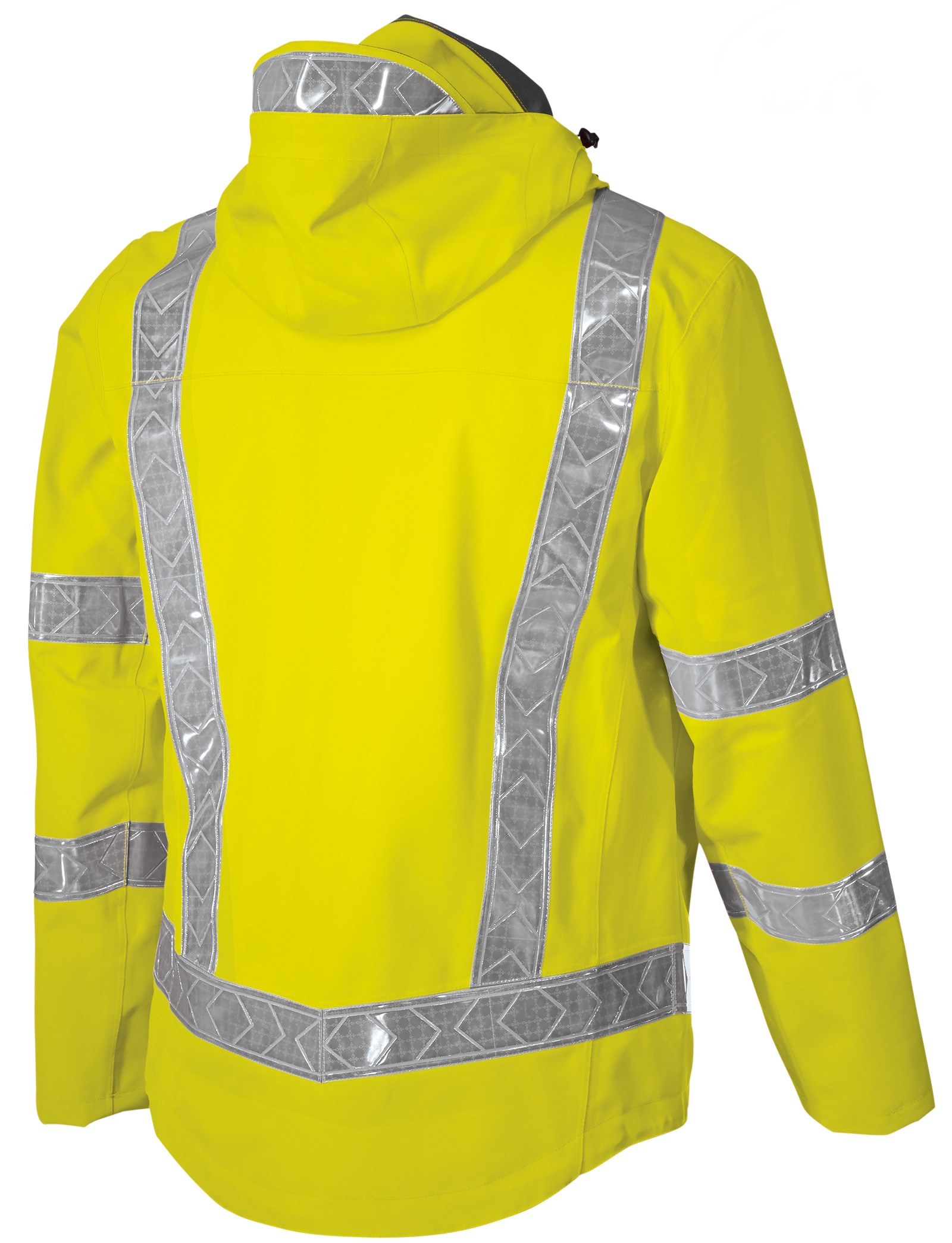 Standards: EN ISO 20471 high visibility class 3, EN 343 weather protection cl. 3, breathable cl .3, EN 14058 (1.3.X) in combination with fleece jacket 2025-628