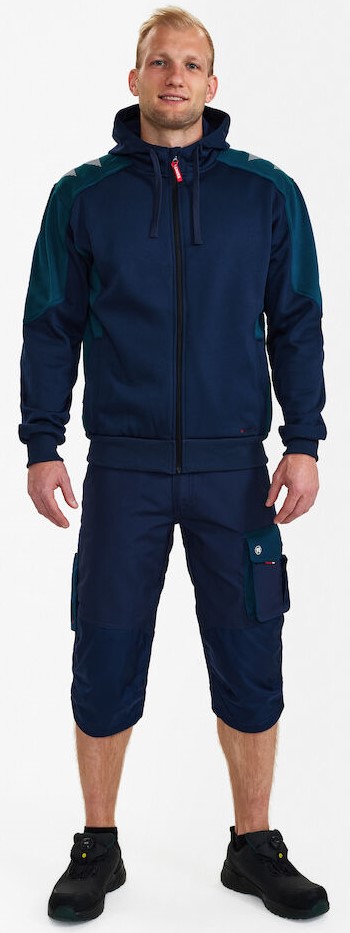 Functional and comfortable jersey sweat cardigan with bonded fleece on the inside. Front zipper. Two large slit pockets with zipper. Knitted cuffs and waistband. High visibility thanks to reflective print on the shoulders.