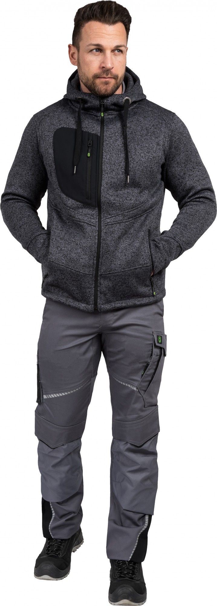 Diese stylische Melange-Strickjacke mit sportlichem Schnitt und modernem Design ist ein idealer Begleiter für jede Gelegenheit und Jahreszeit. Die vielen Taschen außen und innen bieten Stauraum für Gegenstände und sonstige Dokumente, sorgen aber auch für warme Hände. Mit dieser funktionellen Jacke, mit dem kuschelweichen aufgerauten Innenleben, werden Sie sich absolut wohlfühlen. Ein verstellbarer Saumabschluss sorgt für perfekte Passform. Das Besondere an dieser Misch-Strickware sind die Doppelfärbung und die hochwertige Strickart „Cationic Thick Needle“. Die Kontrast-Brusttasche, die vorteilhaft eingesetzten Teilungsnähte sowie die farblich verdeckten Nähte von Kapuze und Kragen sind auf jeden Fall ein Hingucker.