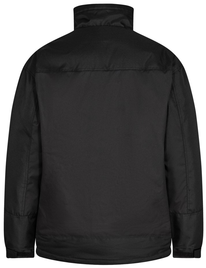 Winter jacket with two zippered slit pockets. Two inside breast pockets, one with a zipper for a cell phone and an opening and loop for a cell phone. Drawstring stoppers inside the jacket. Comfortable microfleece in the collar. Elasticated cuffs and adjustable Velcro fastener. Reinforced shoulders, sleeves and jacket waistband. With extended back to keep the loins warm. Wind and water repellent. Features: Material: 100% polyester, 185 g/m² Lining: 100% polyester Waterproof ≥ 20000 Pa / 15 < Ret ≤ 25 m² Pa/W OEKO-TEX STANDARD 100 Wind and water repellent Extended back to keep the loins warm Comfortable microfleece in the collar Reinforcements in high-wear areas two slit pockets with zipper functional inner pockets with space for a cell phone and opening for cables elasticated cuffs with Velcro fastener adjustable drawstring at the waistband plenty of space for your company logo Color: black Sizes: XS- 4XL