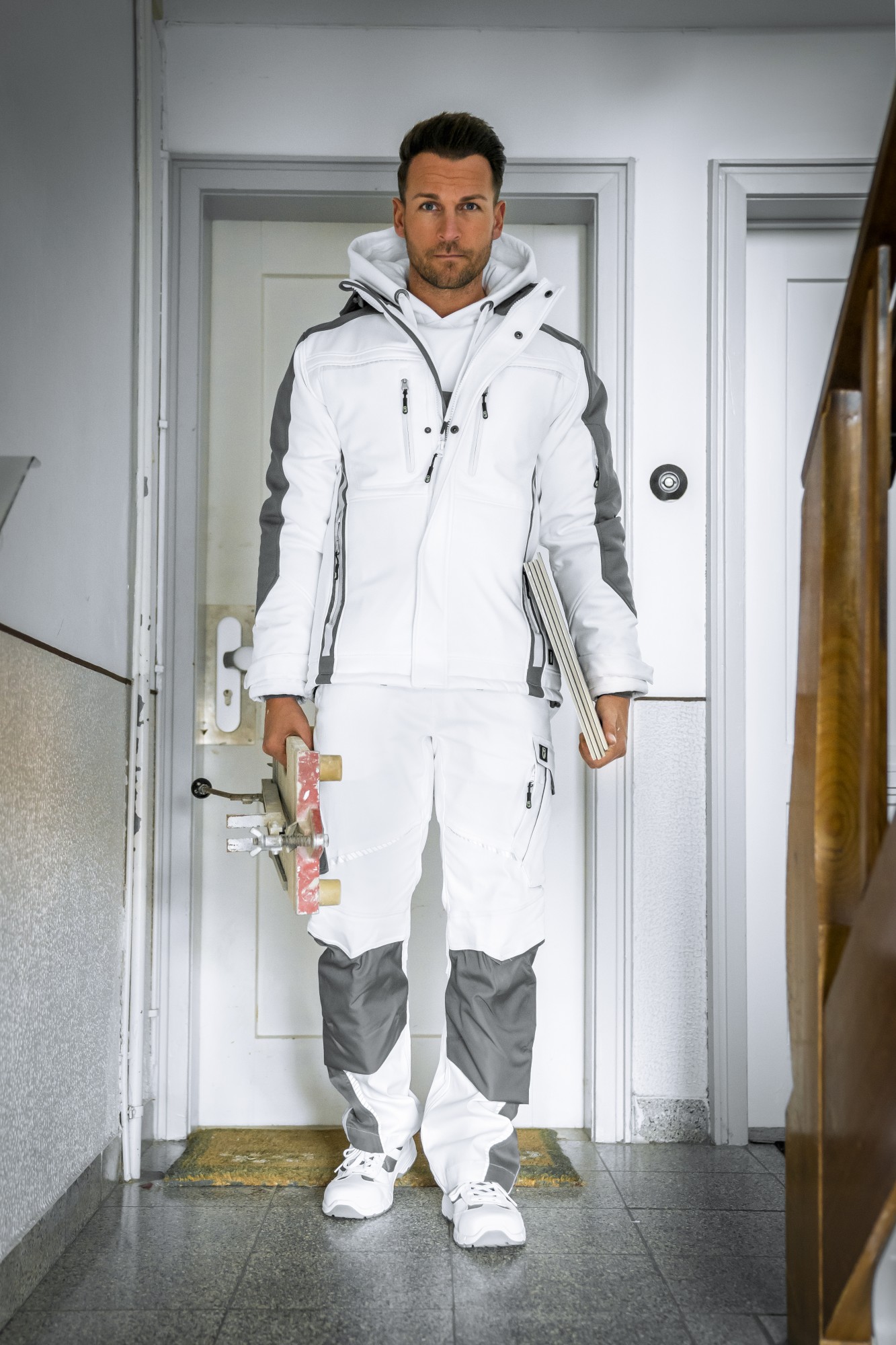 - Obermaterial: 100 % Polyester (Twill) + TPU (Membran) + 100 % Polyester (Mikrofleece), 300 g/m²