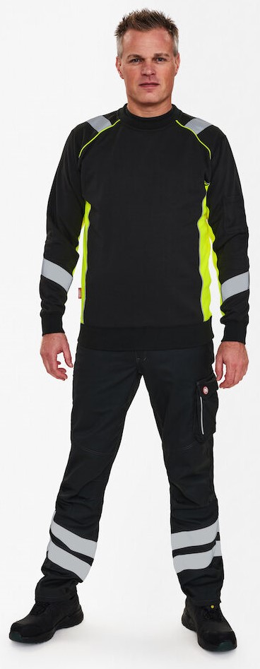 Comfortable and lightweight sweatshirt with knitted cuffs on the collar, waistband and sleeves. There is a pocket on the left sleeve with a slot for pens, for example. Reflective details for increased visibility.