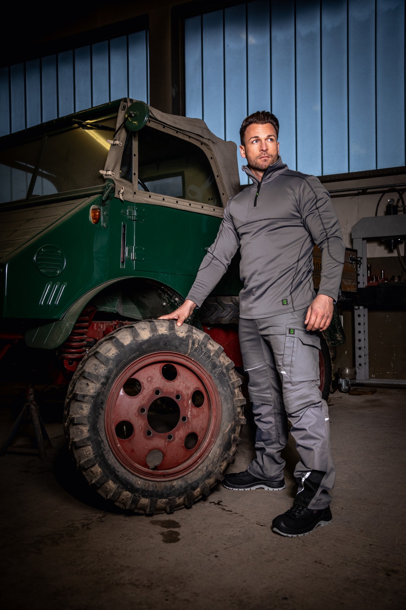 Das Langarmshirt bietet volle Funktion bei ganzem Arbeitseinsatz! Ein flexibles, atmungsaktives und schnelltrocknendes Stretch-COOLPASS-Gewebe, ist außen glatt und innen warm. Dies sorgt für ein hervorragendes Wärme-und Wohlgefühl. Das ergonomische Shirt hat einen Stehkragen mit kurzem Front-Zipper und Kinnschutz, eine praktische Brusttasche mit Reißverschluss und farbige Flachnähte, die keine Reibung auf der Haut erzeugen.