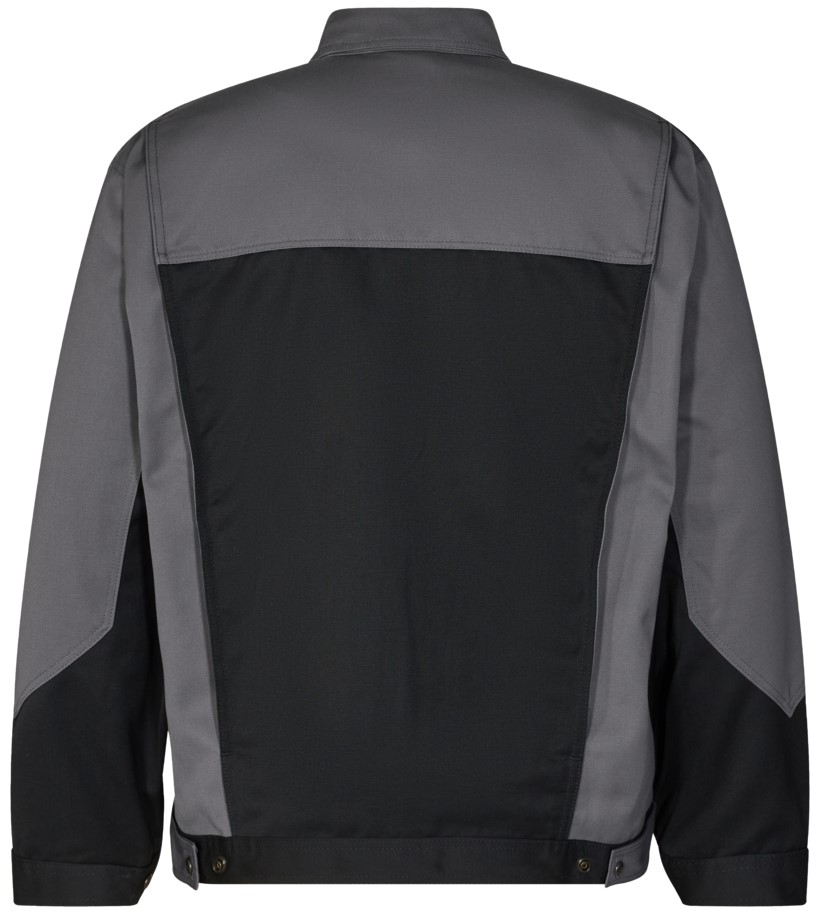 Work waistband jacket with concealed plastic zipper in matching color design. Dark-colored press studs. Chest pocket with flap and Velcro fastener on the left. Open breast pocket with closable cell phone pocket on the right. Two slit pockets. Triple topstitching. Inner pocket with flap. Reinforced upper arms. Adjustable waistband and cuffs. Two pleats in the back for greater freedom of movement. Suitable for industrial laundering.