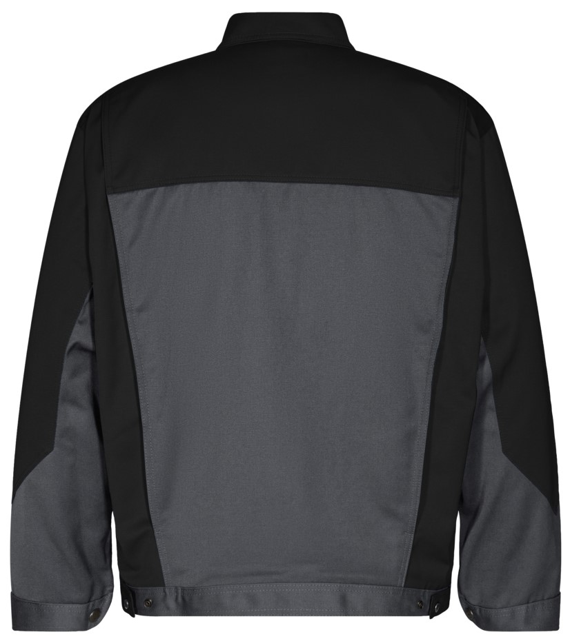 Work waistband jacket with concealed plastic zipper in matching color design. Dark-colored press studs. Chest pocket with flap and Velcro fastener on the left. Open breast pocket with closable cell phone pocket on the right. Two slit pockets. Triple topstitching. Inner pocket with flap. Reinforced upper arms. Adjustable waistband and cuffs. Two pleats in the back for greater freedom of movement. Suitable for industrial laundering.