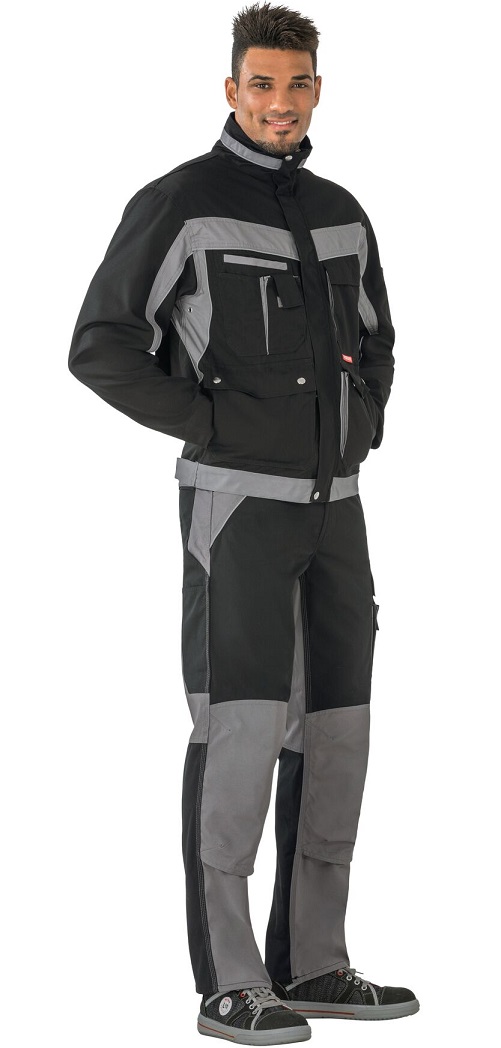 2 aufgesetzte Seitentaschen mit Patte und Druckknöpfen, 1 Brusttasche links mit Patte und Klettverschluss, doppelte Brusttasche rechts, Handytasche auf der rechten Brust, 2 Stiftfächer, mit Druckknopf verstellbare Ärmelbündchen, verdeckter Frontreißverschluss, Stehkragen, Bundweite mit Klettband verstellbar,Ärmeltasche links, Reflexbiesen als Sicherheitsausstattung, 2 Golffalten im Rücken, Lüftungsschlitz im Rücken.