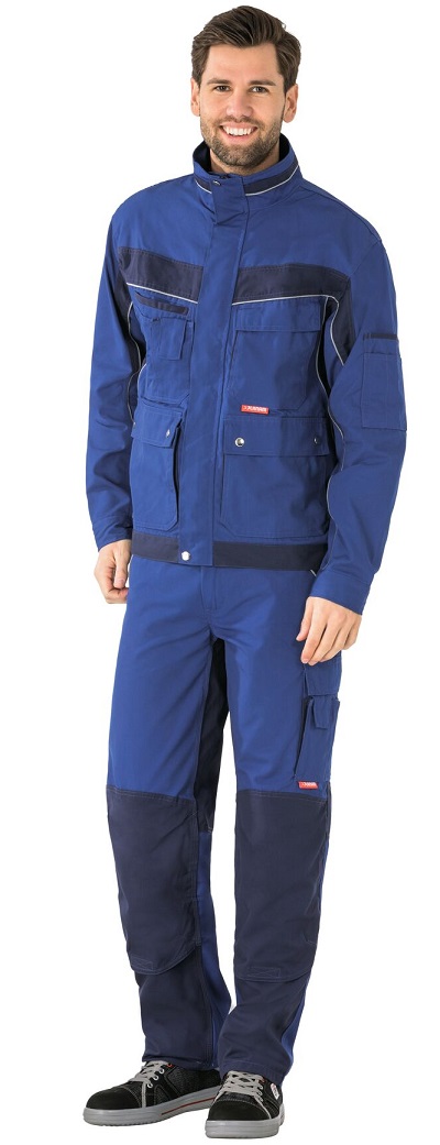 2 aufgesetzte Seitentaschen mit Patte und Druckknöpfen, 1 Brusttasche links mit Patte und Klettverschluss, doppelte Brusttasche rechts, Handytasche auf der rechten Brust, 2 Stiftfächer, mit Druckknopf verstellbare Ärmelbündchen, verdeckter Frontreißverschluss, Stehkragen, Bundweite mit Klettband verstellbar,Ärmeltasche links, Reflexbiesen als Sicherheitsausstattung, 2 Golffalten im Rücken, Lüftungsschlitz im Rücken.