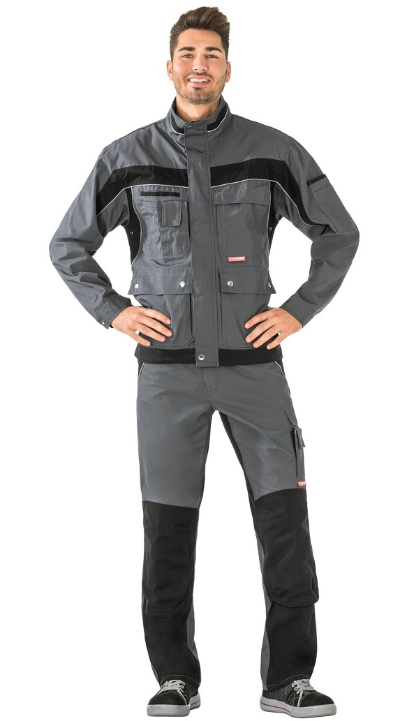 2 aufgesetzte Seitentaschen mit Patte und Druckknöpfen, 1 Brusttasche links mit Patte und Klettverschluss, doppelte Brusttasche rechts, Handytasche auf der rechten Brust, 2 Stiftfächer, mit Druckknopf verstellbare Ärmelbündchen, verdeckter Frontreißverschluss, Stehkragen, Bundweite mit Klettband verstellbar,Ärmeltasche links, Reflexbiesen als Sicherheitsausstattung, 2 Golffalten im Rücken, Lüftungsschlitz im Rücken.