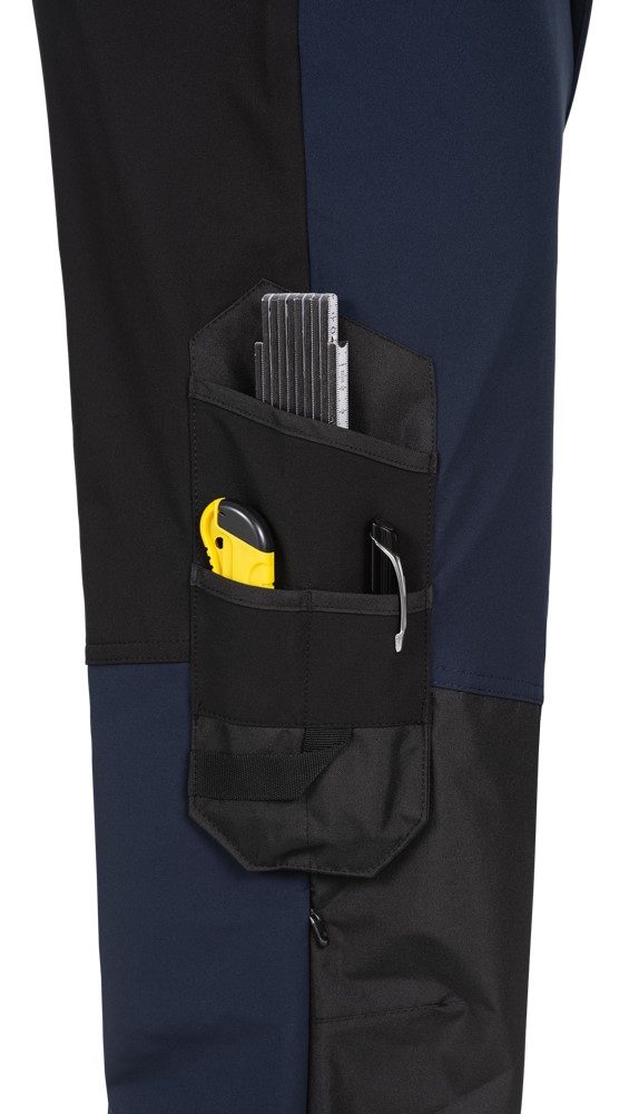 pockets:- 2 side pockets- 1 thigh pocket with zipper- 2 back pockets with zippers- 1 folding rule pocket- 1 two-piece tool pocket