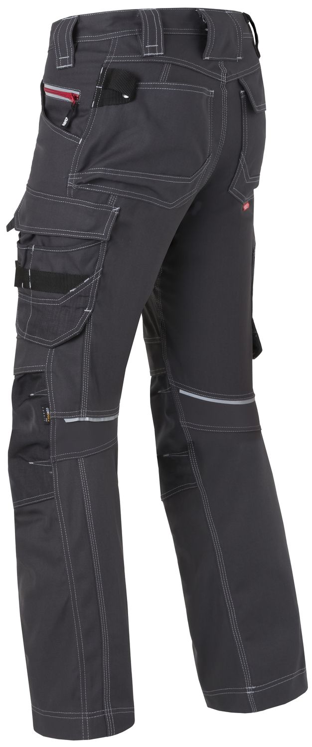 - large loose hanging thigh pocket with flap and additional storage space through integrated mobile phone pocket and further small tool pockets