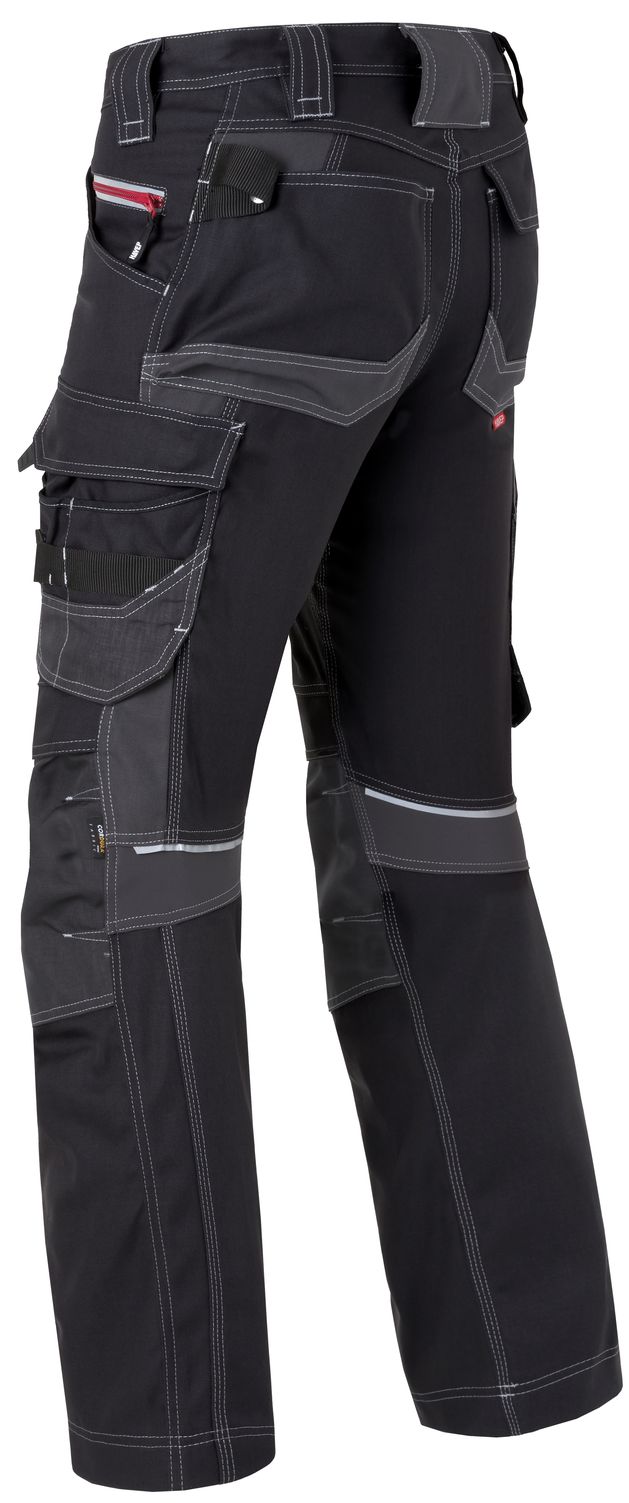 - large loose hanging thigh pocket with flap and additional storage space through integrated mobile phone pocket and further small tool pockets
