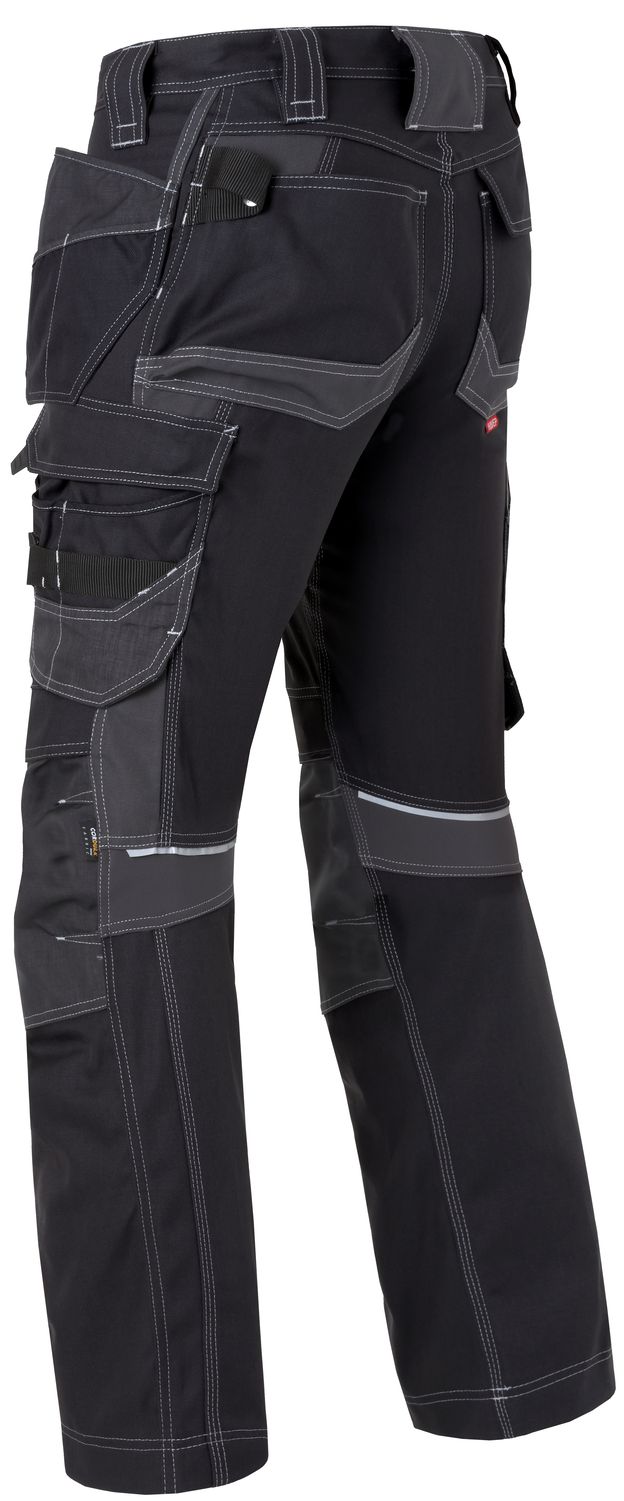 - large loose hanging thigh pocket with flap and additional storage space through integrated mobile phone pocket and further small tool pockets