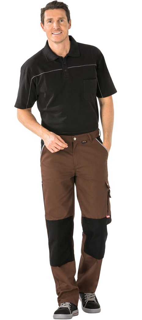 Dieser Artikel ist in Verbindung mit einem PLANAM Kniepolster (Art.-Nummer 9901027) als Knieschutz nach EN 14404 Typ 2, Stufe 1 zertifiziert. Knietaschen aus Cordura®, 2 eingesetzte Beuteltaschen aus Cordura®, rechts doppelte Maßstabtasche aus Cordura®, Reflexbiesen an den Tascheneingriffen und den Taschenpatten, links Oberschenkeltasche mit Patte und Druckknöpfen, darauf aufgesetzte Handytasche, Gummizug im Bund, rechts 1 verstärkte Gesäßtasche, Rundbund mit 7 Gürtelschlaufen und Jeansknopf, Reißverschluss im Hosenschlitz.