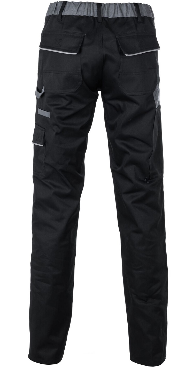 Dieser Artikel ist in Verbindung mit einem PLANAM Kniepolster (Art.-Nummer 9901027) als Knieschutz nach EN 14404 Typ 2, Stufe 1 zertifiziert. 2 eingesetzte Beuteltaschen, 2 aufgesetzte Knietaschen mit farblichen Applikationen, doppelte Maßstabtasche, links Oberschenkeltasche mit Patte und Klettverschluss, Gummizug im Bund, 2 Gesäßtaschen mit Patten, Reißverschluss im Hosenschlitz, Tascheneingriffe und Taschenpatten mit farblichen Biesen abgesetzt.