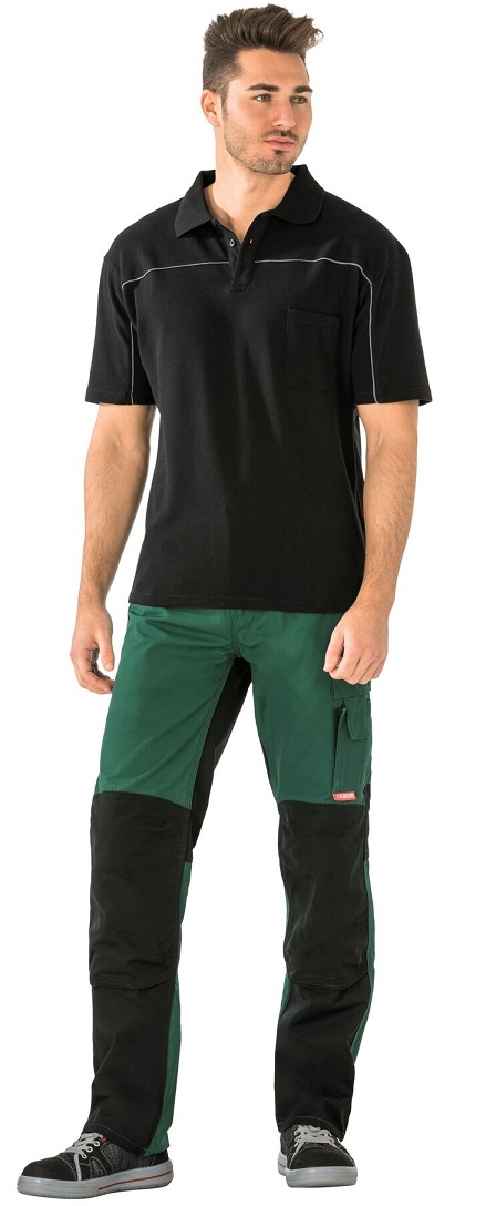 Dieser Artikel ist in Verbindung mit einem PLANAM Kniepolster (Art.-Nummer 9901027) als Knieschutz nach EN 14404 Typ 2, Stufe 1 zertifiziert. 2 eingesetzte Beuteltaschen, 2 aufgesetzte Knietaschen, doppelte Maßstabtasche rechts, links Oberschenkeltasche mit Patte und Klettverschluss, Handytasche links, Gummizug im Bund, 2 Gesäßtaschen mit Patten und Klettverschluss, Reißverschluss im Hosenschlitz, Reflexbiesen als Sicherheitsausstattung.