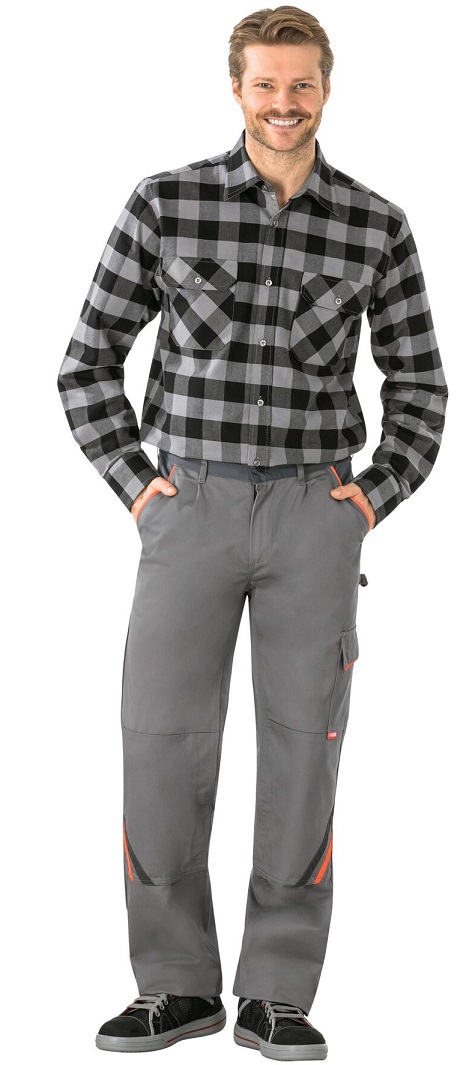Dieser Artikel ist in Verbindung mit einem PLANAM Kniepolster (Art.-Nummer 9901027) als Knieschutz nach EN 14404 Typ 2, Stufe 1 zertifiziert. 2 eingesetzte Beuteltaschen, 2 aufgesetzte Knietaschen mit farblichen Applikationen, doppelte Maßstabtasche, links Oberschenkeltasche mit Patte und Klettverschluss, Handytasche, Gummizug im Bund, 2 Gesäßtaschen mit Patten, Reißverschluss im Hosenschlitz, Tascheneingriffe und Taschenpatten mit farblichen Biesen abgesetzt.