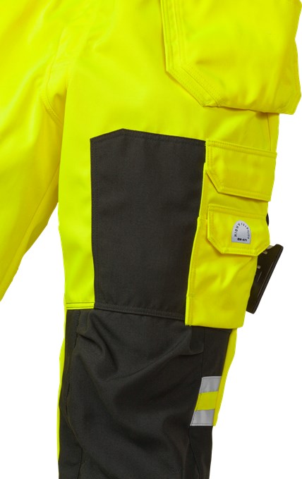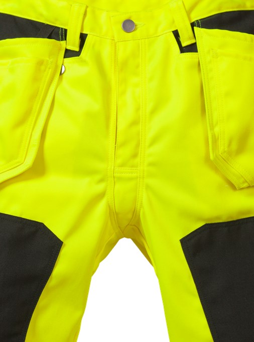 High-visibility workman's trousers made of dirt-, oil- and water-repellent material with soft cotton inside and CORDURA® reinforcements in particularly stressed areas.