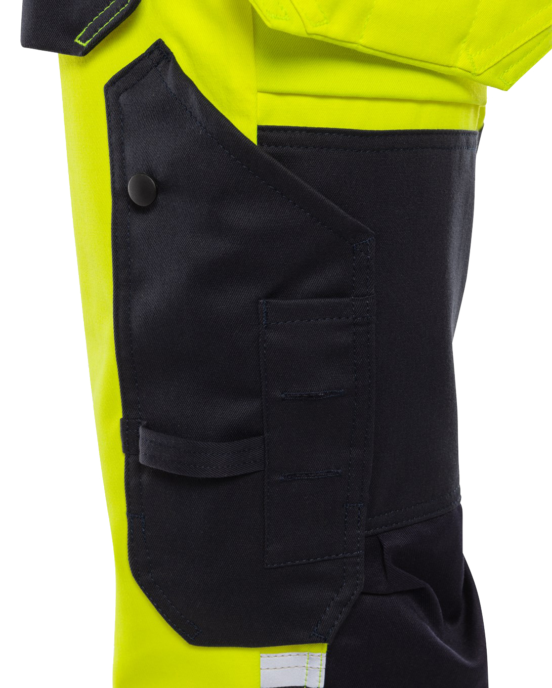 Flame protection work trousers made from a lightweight and durable stretch material. High-visibility trousers with inherent flame protection for optimum safety and outstanding freedom of movement. Approved for at least 50 washes in the industrial laundry.
