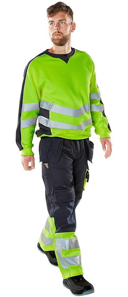 Vertical reflective stripes on the outside of the legs for increased visibility