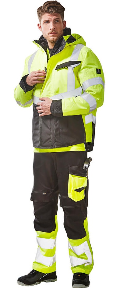 Vertical reflective stripes on the outside of the legs for increased visibility
