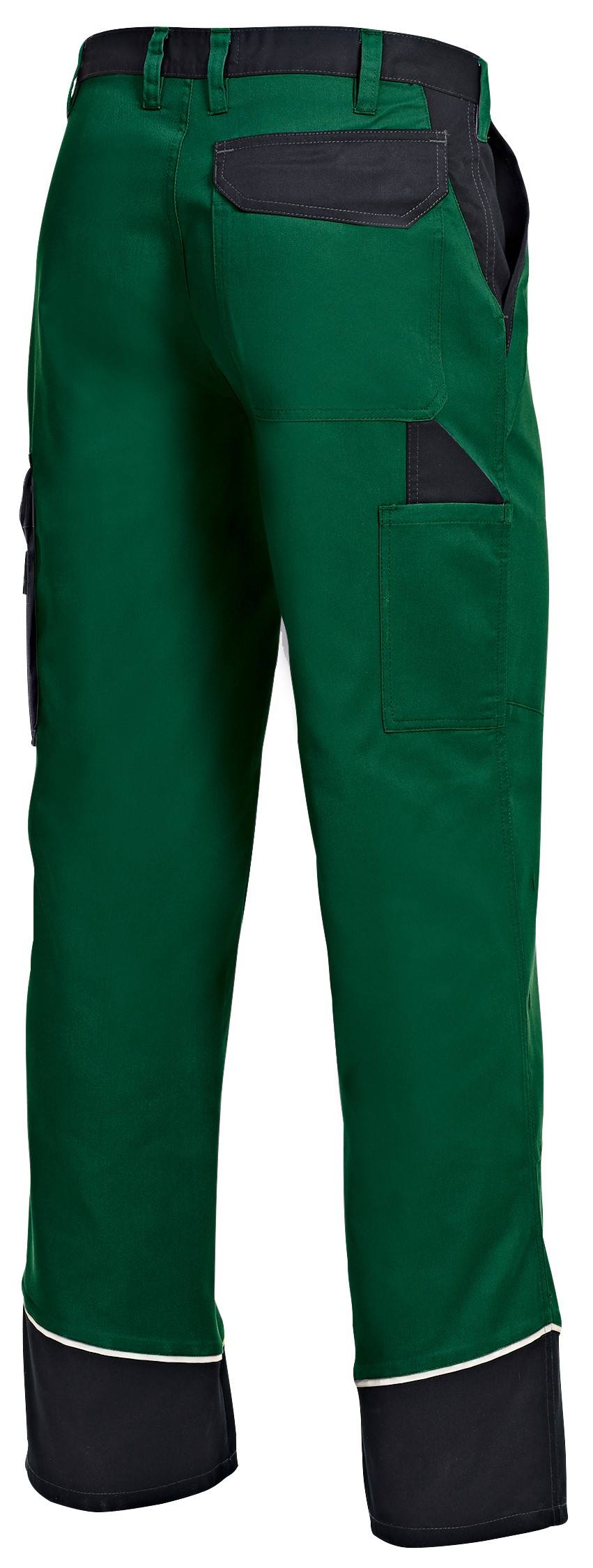 - 2 Seitentaschen, Schenkeltasche mit aufgesetzter Smartphone- und Stifttasche, doppelte Zollstocktasche, 1 mit Patte verschließbare Gesäßtasche, reflektierende Paspeln, Kniepolstertaschen