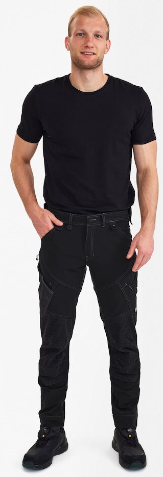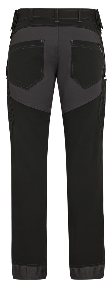Funktionelle Handwerkerhose mit einer modernen Passform und vielen praktischen Details. Optimale Passform mit z. B. ergonomisch geformtem Kniebereich. Der Stoff mit bequemem 4-Wege-Stretch bietet erstklassige Haltbarkeit und Atmungsaktivität. Das Gewebe hat hervorragende feuchtigkeitsabsorbierende Eigenschaften, trocknet schnell und ist deshalb besonders komfortabel. Knöpfe für das leichte Anbringen von Holstertaschen. D-Ring vorne für die Befestigung von z. B. Ausweisen. Zwei geräumige Schrägtaschen vorn. Zwei Gesäßtaschen. Zwei Schenkeltaschen mit Reißverschluss. Die linke Schenkeltasche hat eine zusätzliche Handytasche. Die rechte Schenkeltasche ist mit einer aufgesetzten Zollstocktasche mit zusätzlichen Unterteilungen versehen. Knieverstärkung/Knietasche mit Klettver- schluss unten und zwei Einstellmöglichkeiten zur Höhenverstellung des Knieschutzkissen. Die Knieverstärkung besteht aus besonders strapazierfähigem Kevlar-Material. Die Hosenbeinabschlüsse sind hinten für besondere Strapazierfähigkeit verstärkt. Breiter Saum unten, der ausgelassen werden kann, wenn zusätzliche Beinlänge erforderlich ist. Um die Hose zu verlängern, muss lediglich eine Naht aufgetrennt werden. Das Hosenbein ist anschließend trotzdem noch umsäumt.