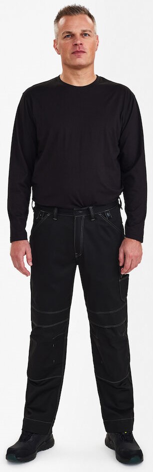 Funktionelle Handwerkerhose mit Kontraststeppnähten. Optimale Passform, ergonomisch geformte Knie. Zwei geräumige, schräg sitzende Einschubtaschen vorne. Zwei Gesäßtaschen mit Patte. Schenkeltasche mit Patte sowie Einschüben für z. B. Stifte. Freihängende, verstärkte Zollstocktasche mit extra Fächern garantiert optimale Bewegungsfreiheit. Verstellbare Hammerschlaufe. Verstärkte Knietaschen mit zwei Einstellmöglichkeiten für Knieschutzkissen. Verstärkter Saum der Hosenbeine für extra hohe Verschleißfestigkeit. Gute Sichtbarkeit durch Reflexpaspeln mittig hinten auf den Hosenbeinen. Die Hose verfügt über einen extra breiten Hosenaufschlag, sodass sich bei Bedarf die Schrittlänge verlängern lässt. Für zusätzliche Beinlänge muss nur ein Saum aufgetrennt werden, dahinter verbirgt sich ein zusätzlicher Saum.