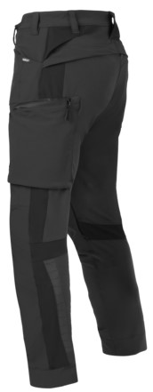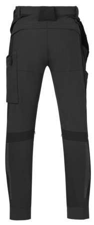 Arbeitshose aus strapazierfähigem Material. Schwarze Designer-Reflexe, 4-Wege-Stretch und vorgeformte Beine.