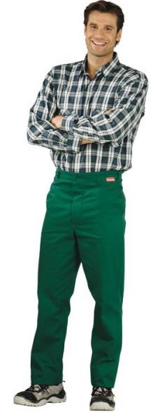 Rundbund mit 7 Schlaufen, Hosenschlitz geknöpft, 2 eingesetzte Vordertaschen, 1 verstärkte Gesäßtasche, 1 Maßstabtasche.