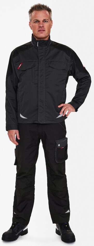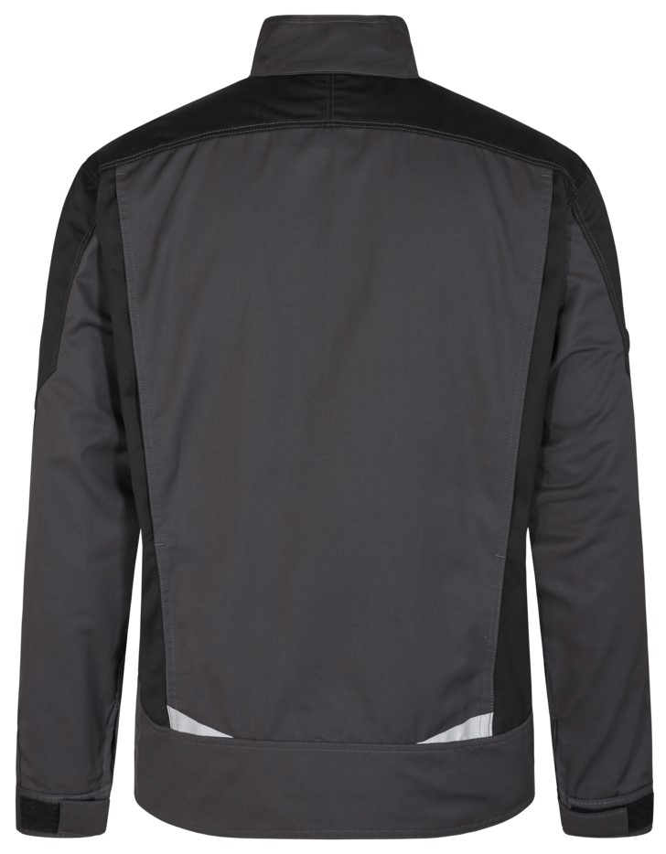 Funktionelle Arbeitsjacke mit vielen Details. Verlängerte Rückenpartie mit Bewegungsfalte. Verdeckter Reißverschlussvorn. Zwei geräumige Einschubtaschen. Zwei Brusttaschen mit Patte – rechts mit Schlaufe und D-Ring zur Befestigung einer ID-Karte und mit zusätzlicher Reißverschlusstasche fürs Handy. Zwei große Innentaschen mit Klettverschluss. Verstellbare Ärmelbündchen. Reflektoren vorne und am Rücken für mehr Sichtbarkeit. Für Industriewäsche geeignet.