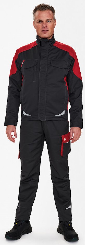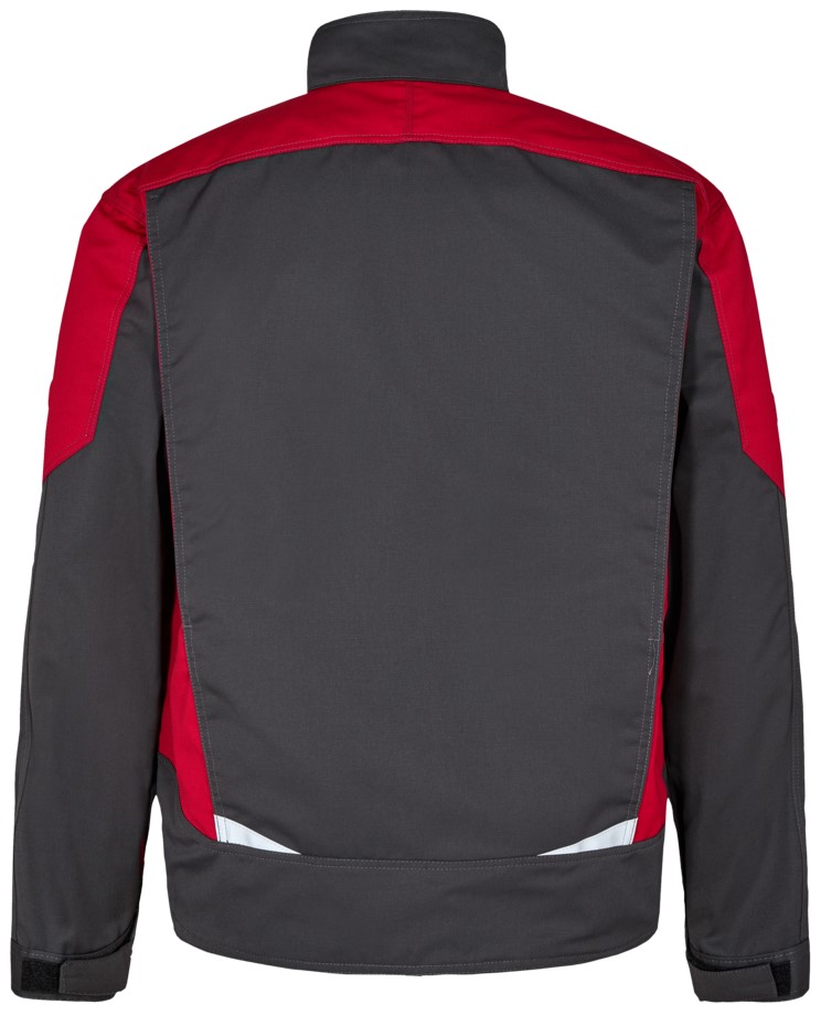 Funktionelle Arbeitsjacke mit vielen Details. Verlängerte Rückenpartie mit Bewegungsfalte. Verdeckter Reißverschlussvorn. Zwei geräumige Einschubtaschen. Zwei Brusttaschen mit Patte – rechts mit Schlaufe und D-Ring zur Befestigung einer ID-Karte und mit zusätzlicher Reißverschlusstasche fürs Handy. Zwei große Innentaschen mit Klettverschluss. Verstellbare Ärmelbündchen. Reflektoren vorne und am Rücken für mehr Sichtbarkeit. Für Industriewäsche geeignet.