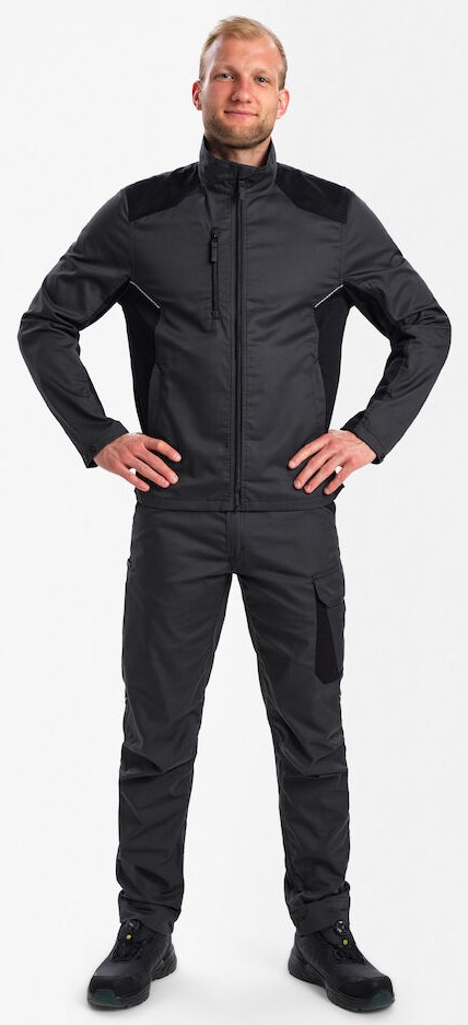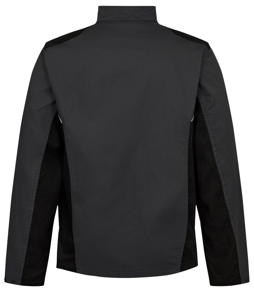 Funktionelle zweifarbige Jacke mit einem Schnitt, bei dem Wert auf eine gute Passform gelegt wird. Die Arbeitsjacke ist aus einem Stoff gefertigt, der bei warmen und kälteren Temperaturen angenehm zu tragen ist. Die Jacke wurde mit Fokus auf die Industrie entwickelt und hat alle notwendigen funktionellen Details sowie zusätzliche Details, die die Arbeitsjacke für andere Branchen geeignet machen. Beispielsweise hat sie zwei geräumige Seitentaschen mit verdeckten Reißverschlüssen und eine Brusttasche mit Reißverschluss. Große Innentasche mit Klettverschluss und Reißverschluss vorne. Verstellbare Manschetten mit Druckknopfverschluss. Reflektierende Details vorne und hinten bieten eine bessere bessere Sichtbarkeit. Die Arbeitsjacke ist so designt, dass sie viel Platz für das Firmenlogo bietet.