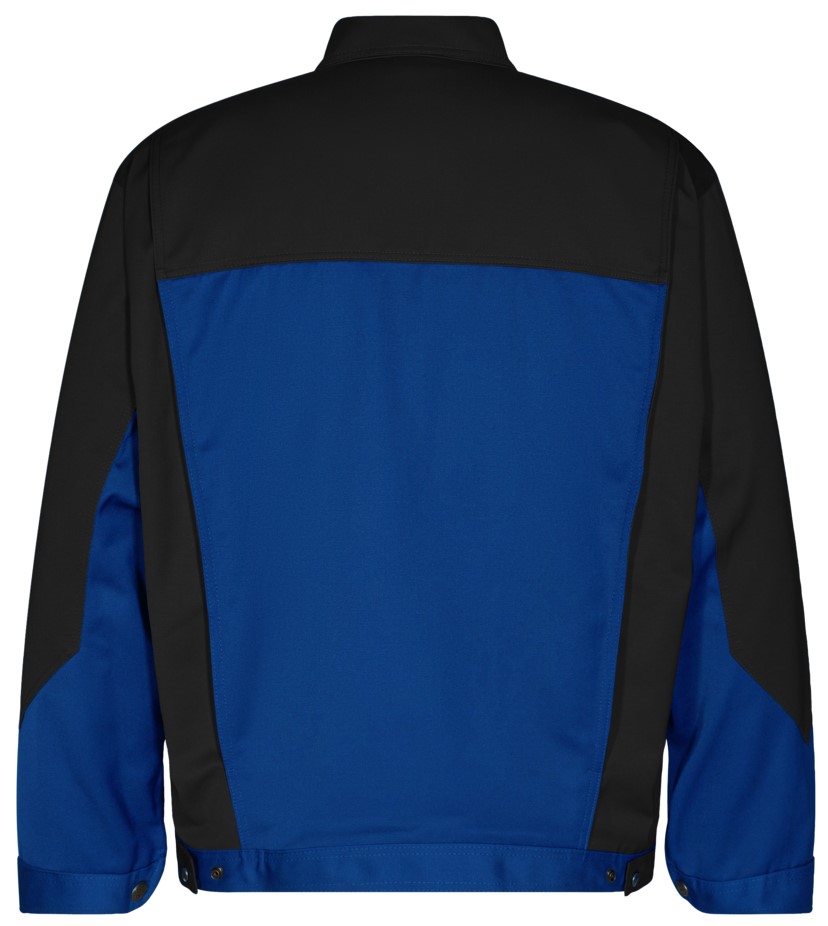 Arbeitsbundjacke mit verdecktem Kunststoffreißverschluss in passendem Farbdesign. Dunkel gefärbte Druckknöpfe. Brusttasche mit Patte und Klettverschluss links. Offene Brusttasche mit verschließbarer Handytasche rechts. Zwei Eingrifftaschen. Dreifach Kappnähte. Innentasche mit Patte. Verstärkte Oberarme. Bund und Manschetten verstellbar. Zwei Dehnfalten im Rücken für mehr Bewegungsfreiheit. Für Industriewäsche geeignet.