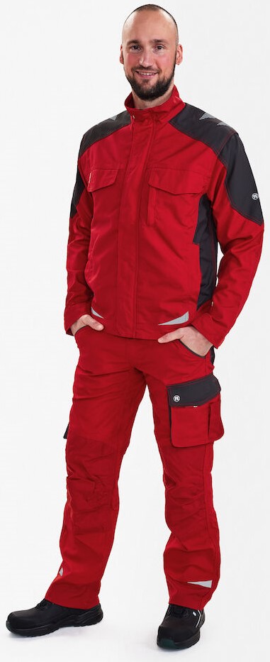 Funktionelle Arbeitsjacke mit vielen Details. Verlängerte Rückenpartie mit Bewegungsfalte. Verdeckter Reißverschluss vorn. Verstärkte Ellbogen. Zwei geräumige Einschubtaschen. Zwei Brusttaschen mit Patte – die rechte mit Schlaufe und D-Ring zur Befestigung einer ID-Karte, die linke mit zusätzlicher Reißverschlusstasche fürs Handy. Zwei große Innentaschen mit Klettverschluss. Verstellbare Ärmelbündchen. Reflexstreifen auf den Schultern sowie vorne und hinten für mehr Sichtbarkeit. Für Industriewäsche geeignet.