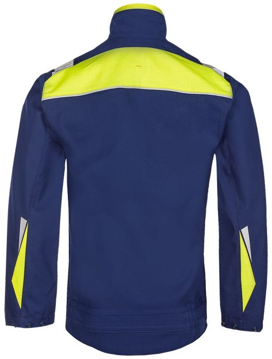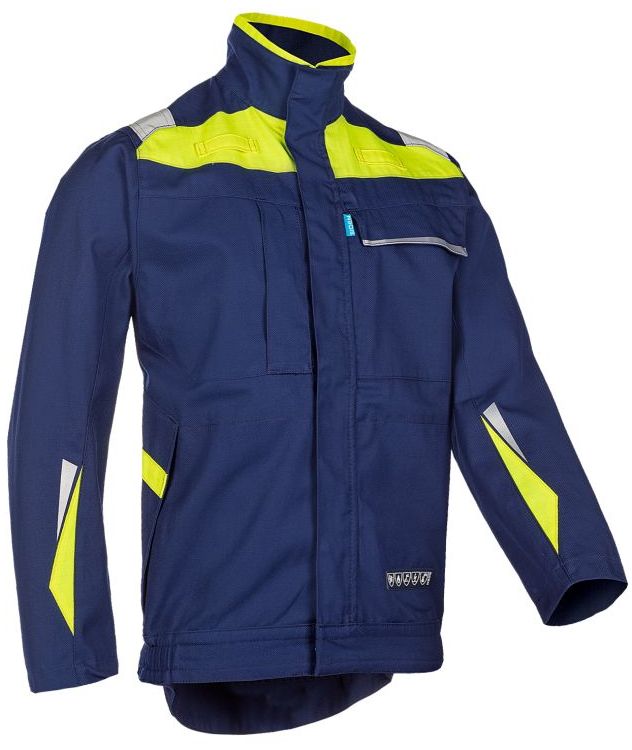Ihre Arbeitskleidung muss nicht der Norm EN ISO 20471 entsprechen, aber Sie möchten trotzdem etwas Sichtbarkeit ? Dann ist die Laruns-Kurzjacke die Antwort auf Ihre Frage. Diese marineblaue Multinorm-Arbeitsjacke setzt markante Akzente in leuchtgelb und reflektierendem Material. Der Blouson erfüllt auch viele internationale Standards, darunter IEC 61482-2, EN ISO 11612, EN ISO 11611, EN 1149-5 und EN 13034. Das verlängerte Rückenteil bietet ein besonders komfortables Gefühl.