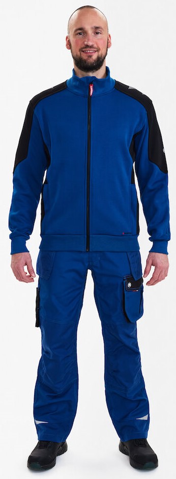 Funktioneller und angenehm zu tragender Cardigan aus Jersey, innen mit geklebtem Fleece. Frontreißverschluss. Zwei große Einschubtaschen mit Reißverschluss. Gerippter Kragen und Strickbündchen an Bund und Ärmeln. Gute Sichtbarkeit durch Reflexapplikationen auf den Schultern.