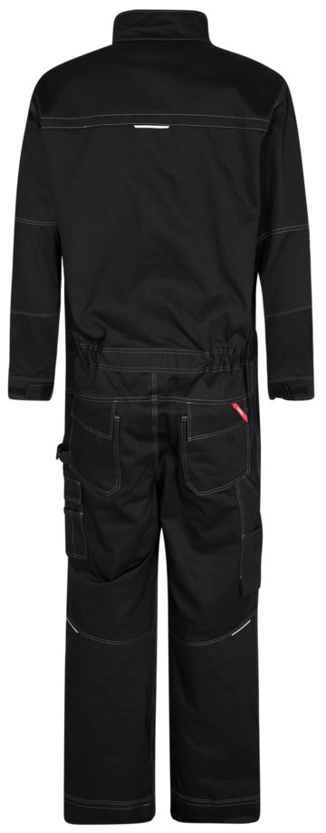 Funktionelle Overall aus 100 % Baumwolle mit Kontrastnähten. Optimale Passform u. a. mit ergonomisch geformtem und verstärktem Knie. Verdeckter Reißverschluss und Klettverschluss vorne. Der elastische Taillenbund hinten sorgt für eine gute Passform und einen sicheren Sitz der Kombination. Brusttaschen mit Unterteilungen und D-Ring. Die Kombination hat zwei geräumige Schrägtaschen, jeweils mit Eingrifftaschen, über die man Zugriff auf die darunter getragene Hose erhält. Zollstocktasche mit freihängendem Boden für optimale Bewegungsfreiheit. Alle Taschen werden mit Klettpatte geschlossen. Verstellbare Hammerschlaufe. Reflektierende Paspeln hinten in der Mitte des Beins sorgen für mehr Sichtbarkeit. Verstärkte Knietaschen mit zwei Einstellungsmöglichkeiten für Kniekissen. Breiter Saum unten, der ausgelassen werden kann, wenn zusätzliche Beinlänge erforderlich ist. Um die Hose zu verlängern, muss lediglich eine Naht aufgetrennt werden. Das Hosenbein ist trotzdem noch gesäumt.