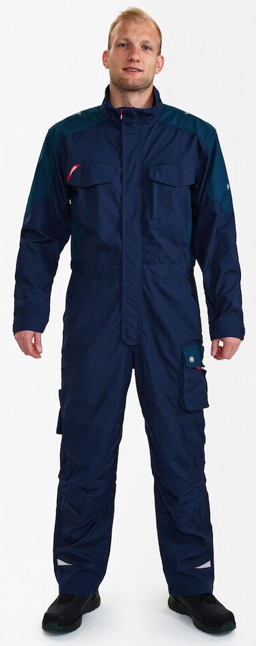 Funktionelle Overall mit vielen Details. Optimale Passform, u. a. sorgen ergonomisch geformte Knie, eine elastische Taille und Panel an der Innennaht im Schritt für mehr Bequemlichkeit. Verdeckter Reißverschluss vorn. Zwei Brusttasche mit Patte – die rechte mit Schlaufe und D-Ring zur Befestigung einer ID-Karte, die linke mit zusätzlicher Reißverschlusstasche fürs Handy. Verstellbare Ärmelbündchen. Zwei geräumige, schräg sitzende Einschubtaschen vorne. Zwei geräumige Gesäßtaschen mit Patte und Klettverschluss. Schenkeltasche mit Reißverschlusstasche und zusätzlicher kleiner Tasche. Sie ist geräumig und sorgt dank des freihängenden Bodens für mehr Bewegungsfreiheit. Unten verstärkte Zollstocktasche mit zusätzlichen Fächern. Auch die Zollstocktasche hat einen freihängenden Boden. Knieverstärkung/Knietasche mit Klettverschluss unten sowie zwei Einstellmöglichkeiten für Knieschutzkissen. Verstärkter Saum der Hosenbeine hinten sowie vorne und Verstärkung an den Ellenbogen für extra hohe Verschleißfestigkeit. Reflexstreifen an Schultern, Taille und Knien und unten an den Hosenbeinen für bessere Sichtbarkeit. Für Industriewäsche geeignet.
