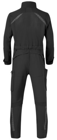 Overall aus strapazierfähigem Material. Schwarze Designer-Reflexe, 4-Wege-Stretch und vorgeformte Beine.