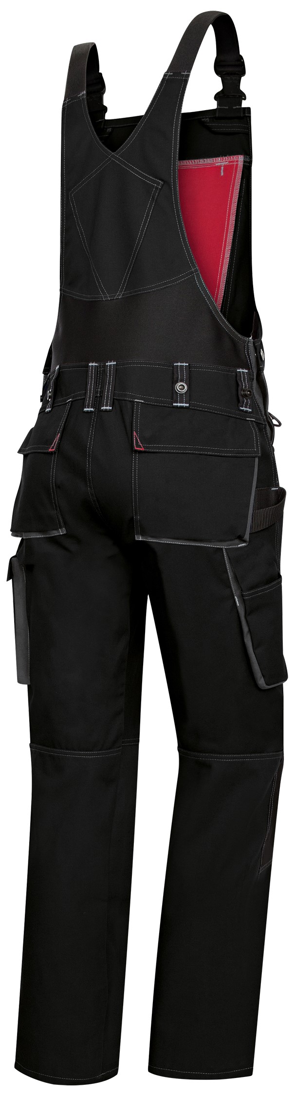 - Stretchträger mit Kunststoff-Steckschnallen, doppelte Latztasche mit Reißverschluss und Taschenklappe, 2 Stifttaschen, hochgezogener Rücken mit Stretcheinsatz für mehr Bewegungsfreiheit, regulierbare Bundweite